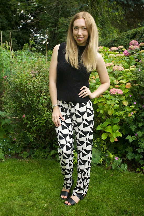 I went for a pair of slouch monochrome trousers which I love, they are so comfortable and easy to wear! I wanted some palazzo pants but think I've decided they don't suit me, so the slouch style was a match made in heaven for me! I paired them with my new knitted sleeveless jumper from Zara's amazing sale, it was only £9.99 so of course I bought it in two colours! Finally, I wore my super comfy Topshop sandals!